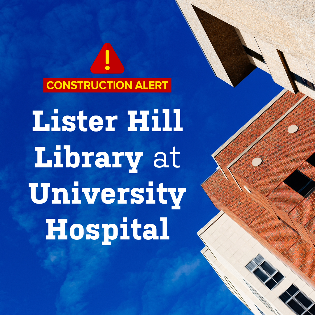 During construction, LHL @ University Hospital will continue its mission to provide hospital employees with accurate, reliable and timely information in support of patient care, education and research, and librarians will return to the space once renovations are complete. To contact a librarian about mediated literature searches, consultations on specific information needs, assistance with locating resources, and hands-on training for individuals or groups, use this request form, call 934-2275, or email lhlwest@uab.edu.