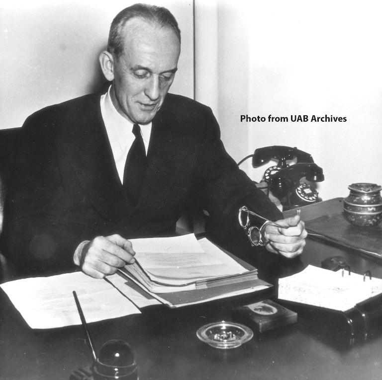 August 2014 Image of the MonthDr. Roy Kracke, became the first dean of the new medical school in Birmingham on August 1, 1944. He had one year to set up the four-year school in the crowded Jefferson Hillman Hospital complex, and the first new faculty were hired by the end of the year. Junior students began clinical training in June 1945. Faculty and staff were moved from Tuscaloosa in September and classes for freshmen began on October 8, 1945.