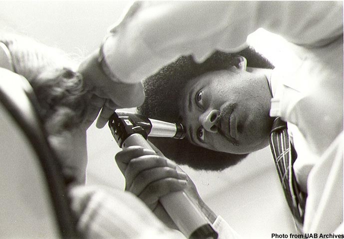June 2006 Image of the MonthOptometry student Terrence N. Ingraham examines a patient, May 1978. Ingraham received his O.D. degree from the UAB School of Optometry in June 1978, becoming the first African American graduate of the school.