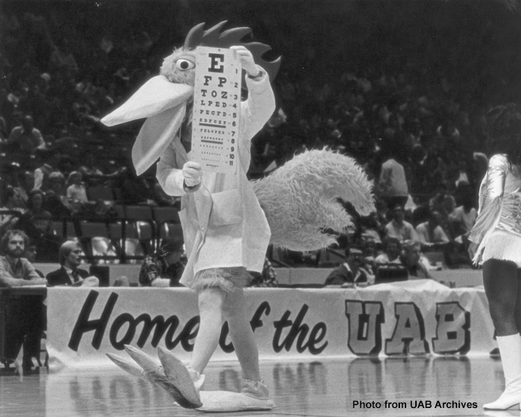 November 2006 Image of the MonthOn November 24, 1978 the men's basketball team played its first NCAA-level game in front of more than 14,000 fans at the BJCC. The Blazers lost the game to Nebraska. Four days later, the Lady Blazers lost their first game against North Alabama. "Beauregard T. Rooster," the second mascot of UAB, debuted in 1979 and remained the University’s mascot throughout the 1980s.