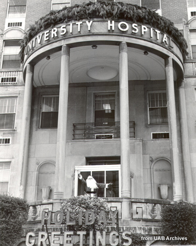 December 2006 Image of the MonthUniversity Hospital and a special Christmas visitor send holiday greetings to hospital patients, visitors and staff, circa 1967.