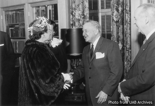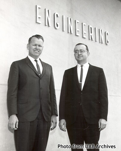 March 2008 Image of the MonthPictured are (left to right) Don Bowermann, president of the Birmingham Chapter of the American Institute of Industrial Engineers, and Dr. Joseph H. Appleton, professor of Civil Engineering. The AIIE chapter provided funding for the lettering on the building. Dr. Appleton later served as director of the Engineering Division from 1967 until 1971 and as first dean of the School of Engineering from 1971 until 1978. The engineering program began in the 1940s and was the first non-health related program at UAB where students could complete all of their coursework in Birmingham.