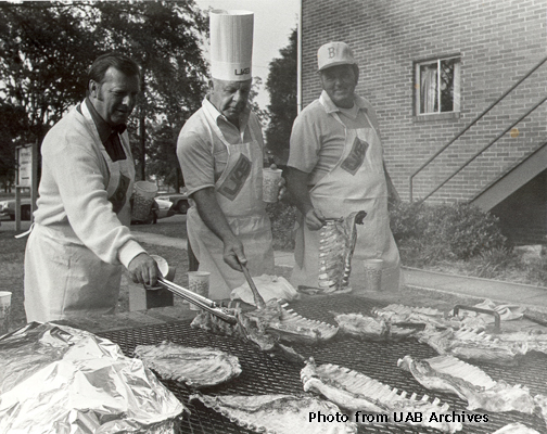 UAB officials work the barbecue pit, circa 1980