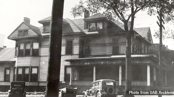The former home was located at 2131 6th Avenue North and was acquired as part of a mortgage foreclosure. On September 14, 1936 the University of Alabama's Birmingham Extension Center opened in the renovated building. For the first term, 116 students were enrolled. The center remained at this location until 1954 when a new facility opened adjacent to the Medical Center. The old house was later demolished for a parking lot.