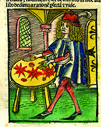 Colored woodcut from the gems and stones section of the heavily illustrated natural science work, Hortus Sanitatis (1497) - Arnold of Villanova, 1235-1312.