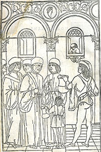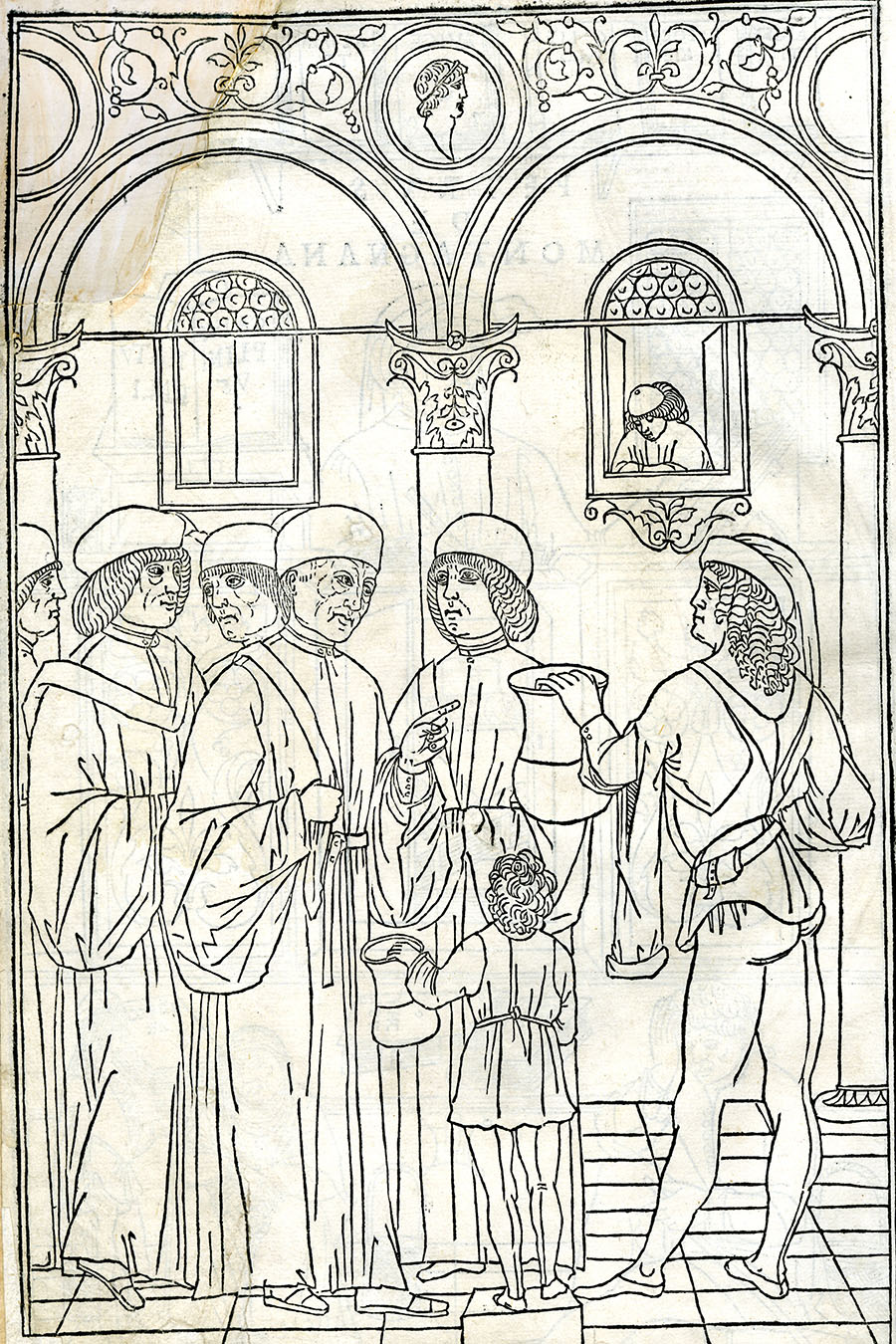 Full-page woodcut depicting physicians performing urine analysis, from Joannes de Ketham’s Fasciculus Medicinae (1500) - [Ketham, Joannes de, 15th cent.]