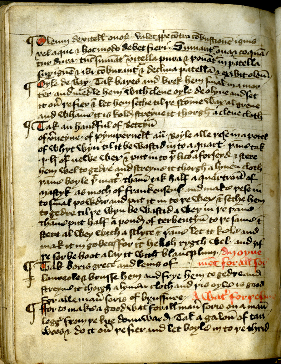 of verueyne. of pympernelle ana. Boyle alle þese in a potel