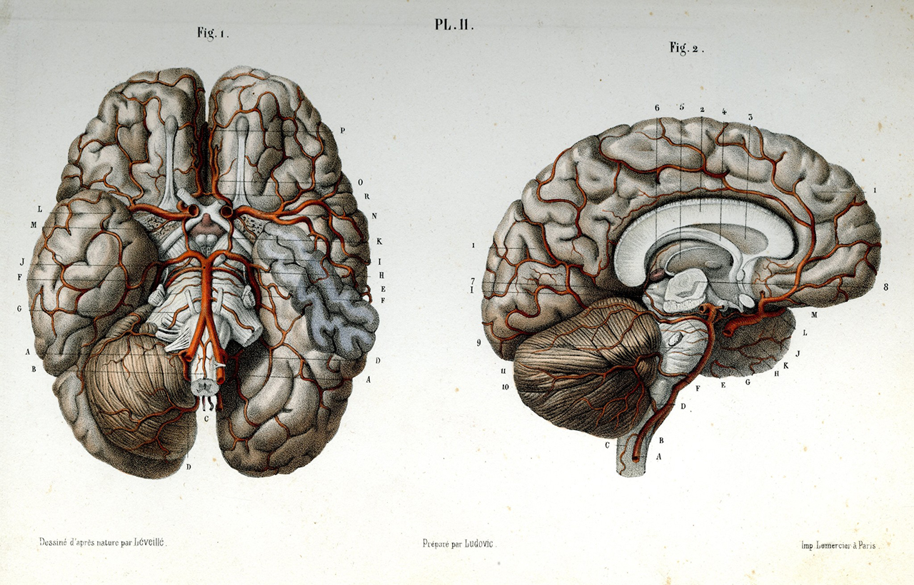 Image: from Ludovic Hirschfeld’s Névrologie, ou, Description et iconographie du système nerveux et des organes dessens de l'homme, Paris, 1853.