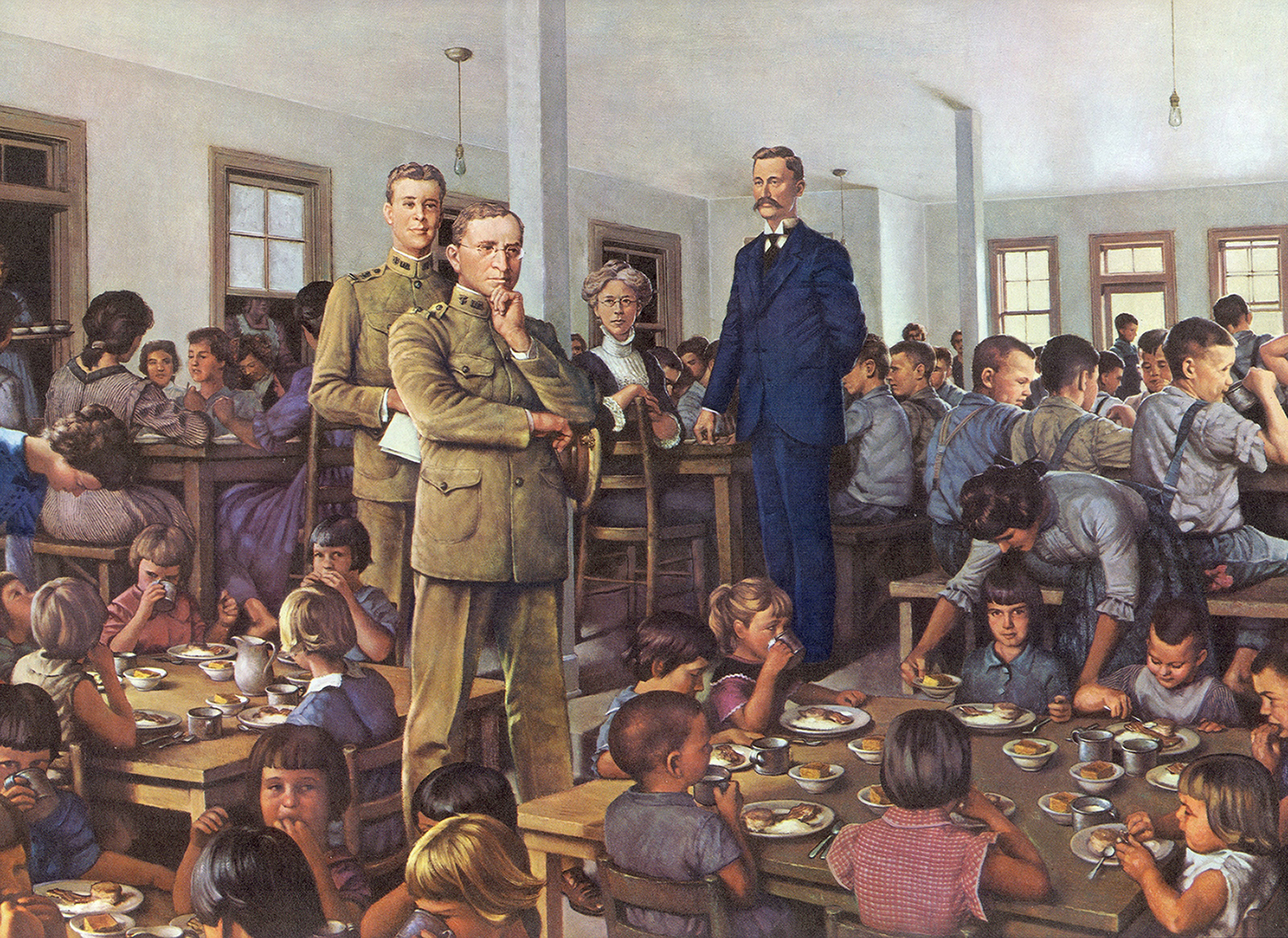 Goldberger (center) with his assistant C. H. Waring in one of their 1914 orphanage studies near Jackson, Mississippi.