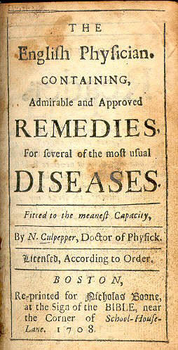 Nicholas Culpeper, The English Physician, edited with footnotes by Michael A. Flannery (Tuscaloosa: University of Alabama Press, 2007).